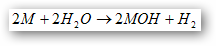 V prírode sa nenachádzajú v základnéj forme. Majú jeden valenčný elektrón, ktorý sa nachádza v orbiláli ns. Odovzdaním tohto jedného valenčneho elektrónu získavajú elektrónovú konfiguráciu najbližšieho predchádzajúceho vzácneho plynu. V tomto spočíva ich vysoká reaktivita. S vodou reagujú veľmi energicky za vzniku bázy MOH, kde M je alkalický kov.